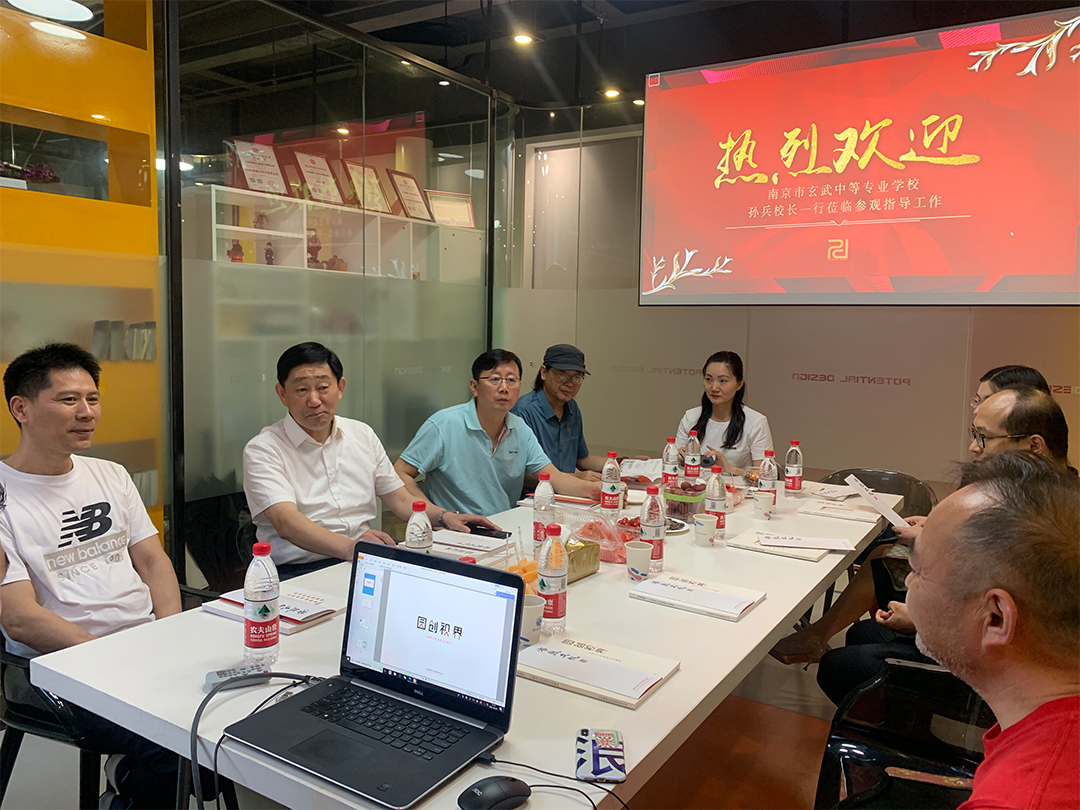 6月7日下午,玄武区教育局党组成员、南京市玄武中专党总支书记、校长孙兵率领学校分管实训工作的文武副校长、艺术系宋友义副主任及美术教研室老师深入企业调研,莅临江苏潜能文化发展有限公司进行参观、交流。